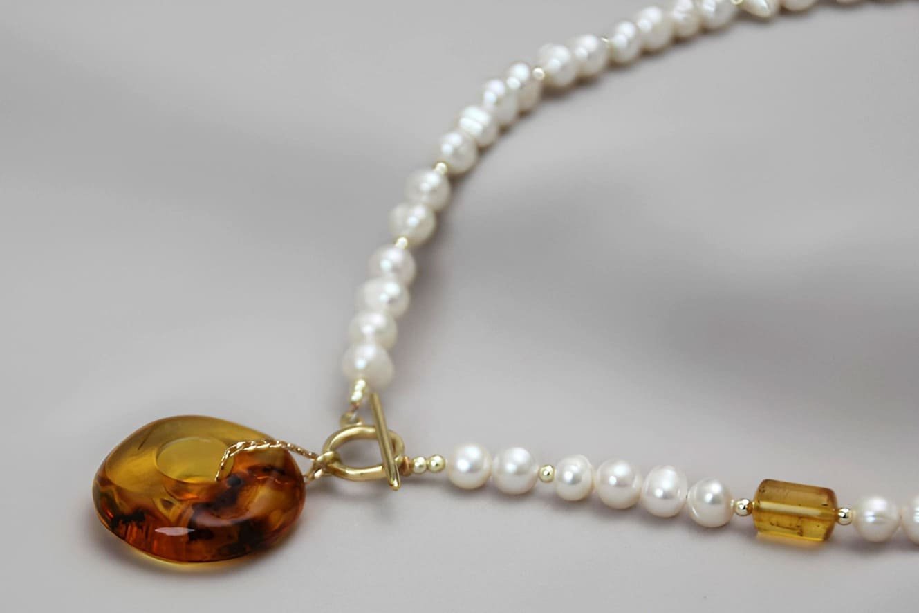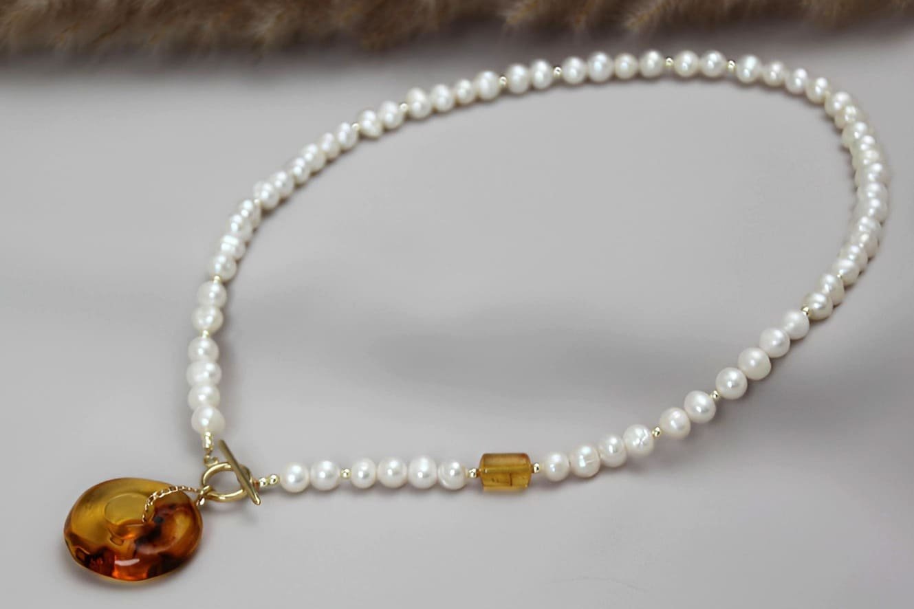Pearl necklace with amber