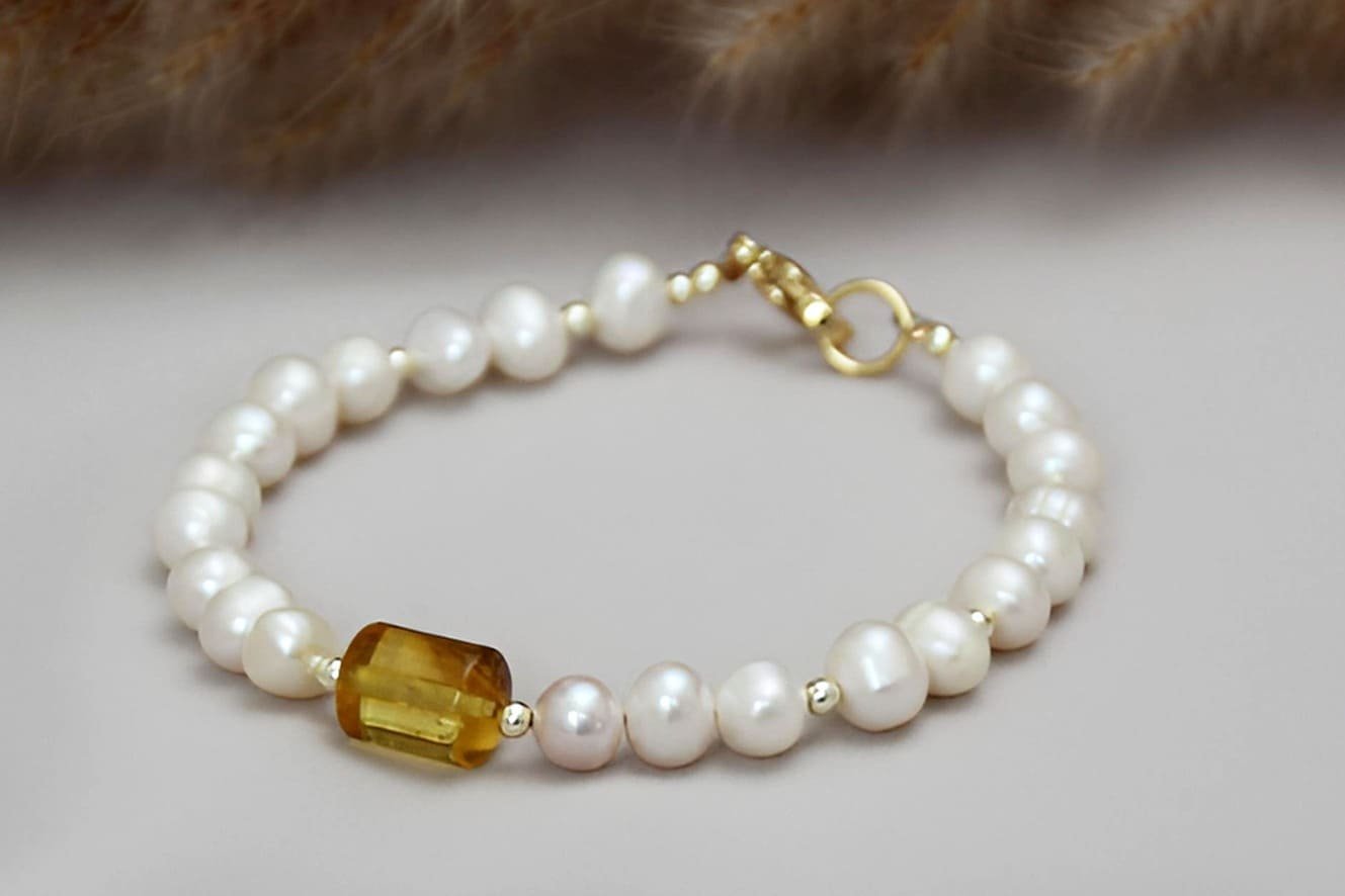 Nuostabi apyrankė moteriai, mėgstančiai vertę turinčius papuošalus. Perlai – tiek vieni, tiek suderinti su kitais akmenimis ar brangakmeniais, niekada savo vertės neprarandantis papuošalas. Gintaras – taip pat nenusileidžiantis savo ilgaamžiškumu ir verte.
