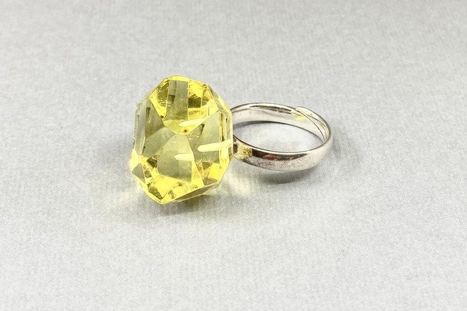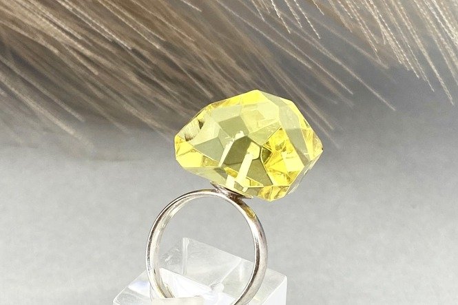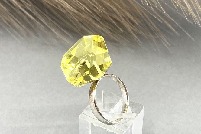 Gintaro diametras 19 mm. Žiedo dydis reguliuojasi, tad tiks ir didesnį dydį nešiojančiai.
